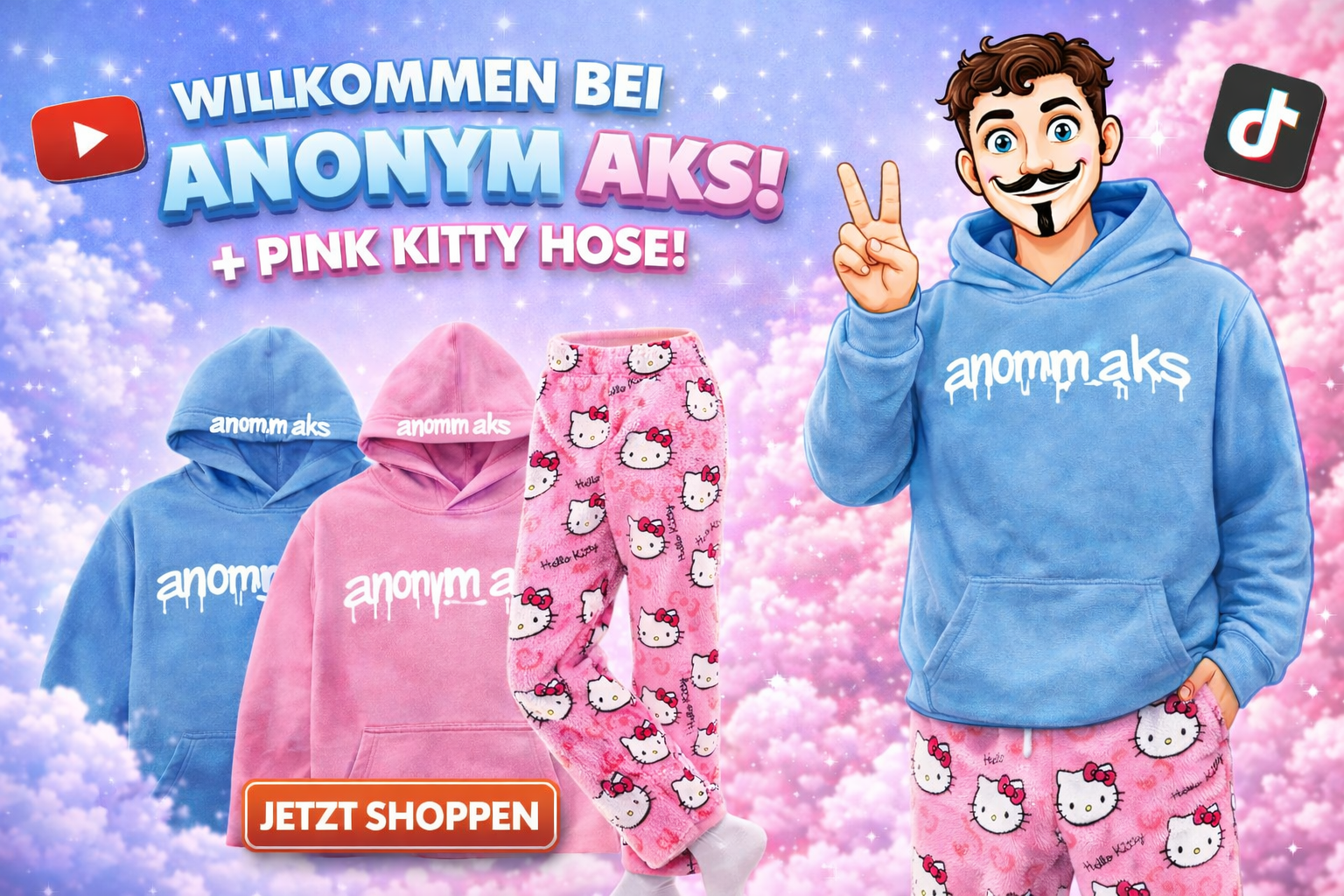 Ihr wollt mich supporten? Dann checkt meine Hello Kitty Pyjama Hosen im Shop! 🩷